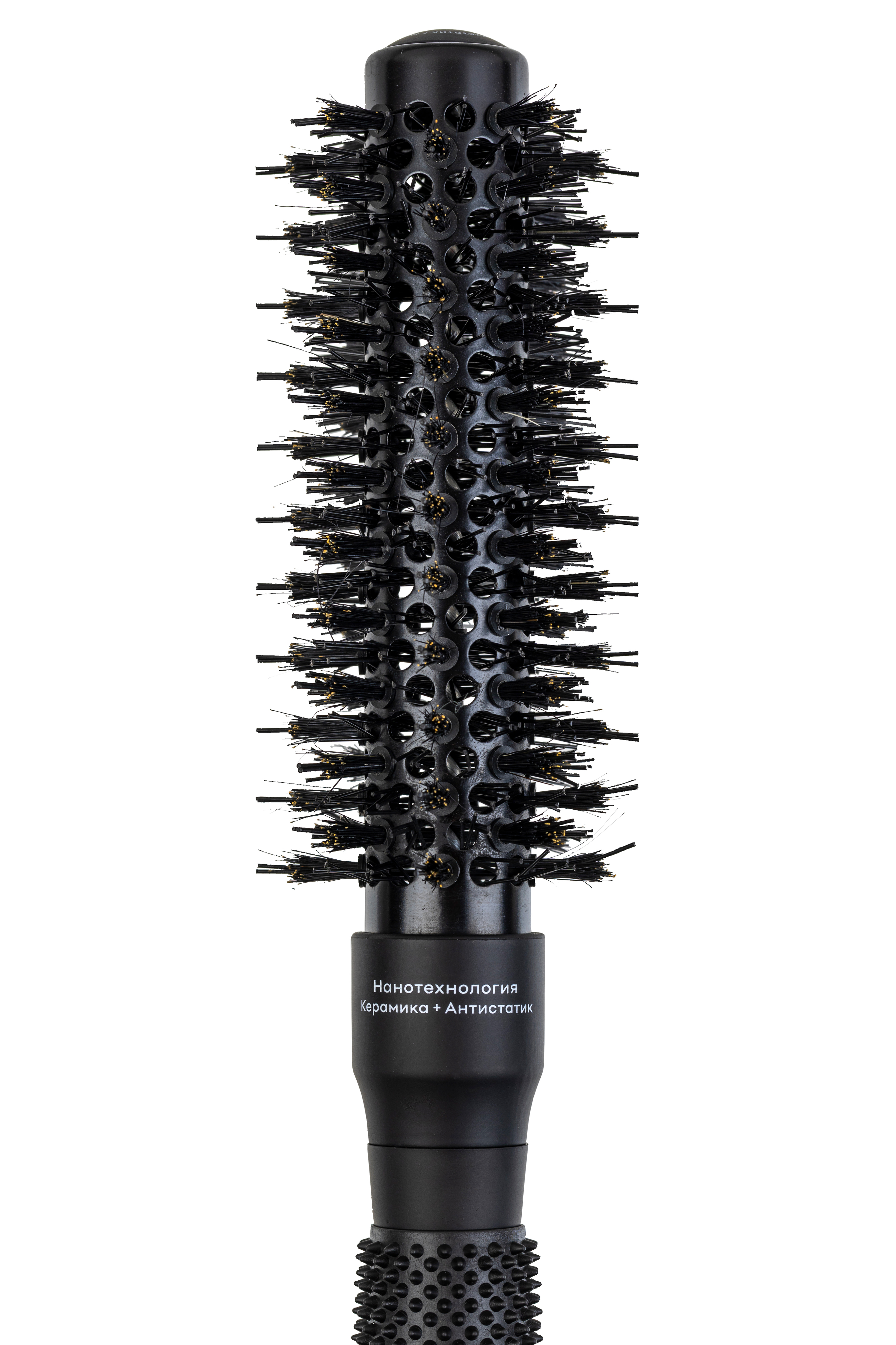 Позволяет формировать и создавать великолепные укладки на любой длине волос. ТЕРМОСТОЙКАЯ НЕЙЛОНОВАЯ ЩЕТИНА имеет специальное покрытие, которое излучает отрицательные ионы, воздействуют на волосы: делают их блестящими, мягкими и шелковистыми. ИОННО – КЕРАМИЧЕСКИЙ КОРПУС обеспечивает антистатическое действие. ПРОДУВАЕМЫЙ КОРПУС создаёт равномерное распределения тепла и циркуляция воздуха сквозь основание , в 2 раза сокращает время укладки. ЭРГОНОМИЧНАЯ ПРОРЕЗИНЕННАЯ РУЧКА не скользит в руках, не нагревается . В ручку встроен специальный магнит, который усиливает антистатический эффект.